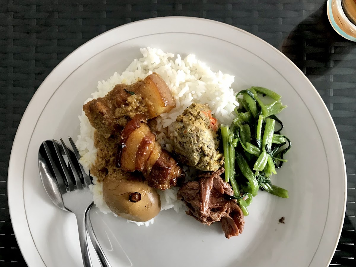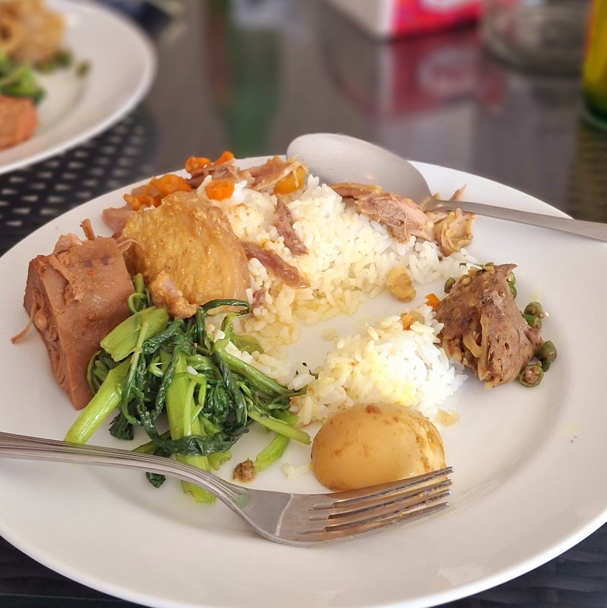 Be genyol adalah salah satu kuliner khas Bali yang menggunakan daging babi sebagai bahan utamanya. Tidak seperti babi guling, be genyol, daging babinya, teksturnya lebih kenyal dibandingkan daging babi pada kuliner babi guling. Nasinya pulen dan terdapat varian sayur kangkung tumis terasi , sayur nangka , tum babi , dan telur 1/2 porsi serta babi genyol lengkap dengan kacang goreng dan sambal. Babi genyol nya kenyal lembut tipikal yang di masak cukup matang. Terdapat dua jenis sambal yang disajikan yaitu sambal hijau & sambal kecombrang. Point 7 dari 10. Be genyol is a typical Balinese culinary dish that uses pork as the main ingredient. Unlike suckling pig, be genyol, the pork, the texture is chewier sometimes more soften than the pork in suckling pig culinary delights. This local warung have good rice which in this dish includes water spinach, coconut vegetables dish , tum babi , eggs and of course babi genyol itself. They served with 2 kind of sambal , i prefer sambal kecombrang rather than sambal ijo. Nice dish and delicious. Point 7 from 10.