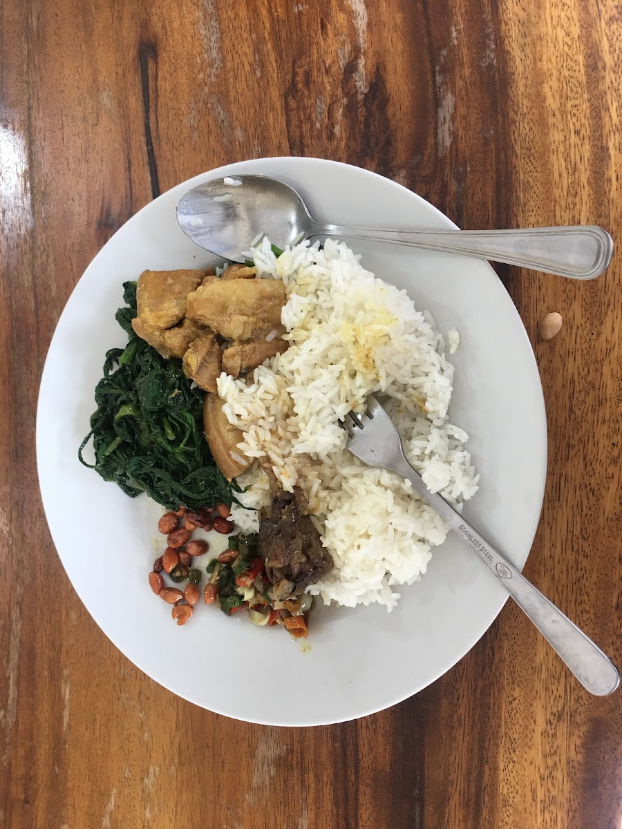 Although the place is small, but I think this restaurant offer very tasty traditional balinese food. Almost all served food are tasty and unique. I like most of them, but indeed the price is fair not the cheap one. You can have a box of mixed rice and meat and also vegetables in 25 to 30 thousand rupiah. I will suggest you to put this restaurant on your list for culinaire traveling. Oh yess, this serve not only pork, but also chicken meat and eggs.